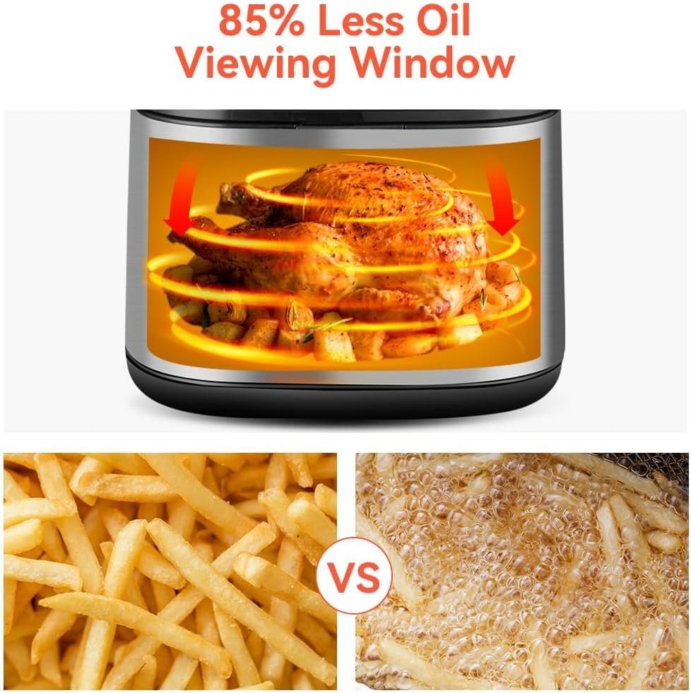 TRANSPARENT WINDOW: The classic 5 qt ASZ airfryer Visual features a transparent viewing window in front of basket, allowing you to monitor the cooking process of food visible in real-time and adjust the desired level of doneness and crispiness.