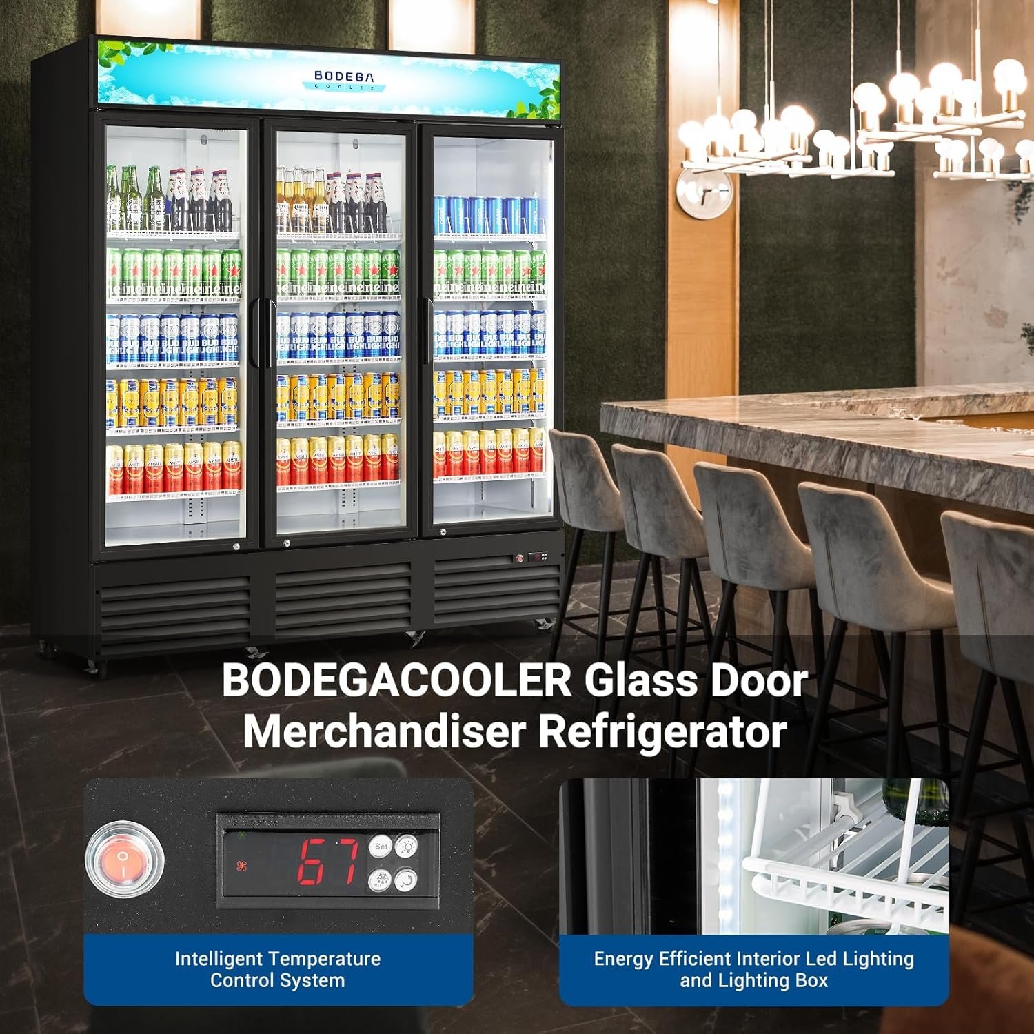 BODEGACOOLER glass door merchandiser refrigerator enhance your shopping experience with the merchandiser refrigerator featuring an interior light and a large, romantic illuminated canopy.