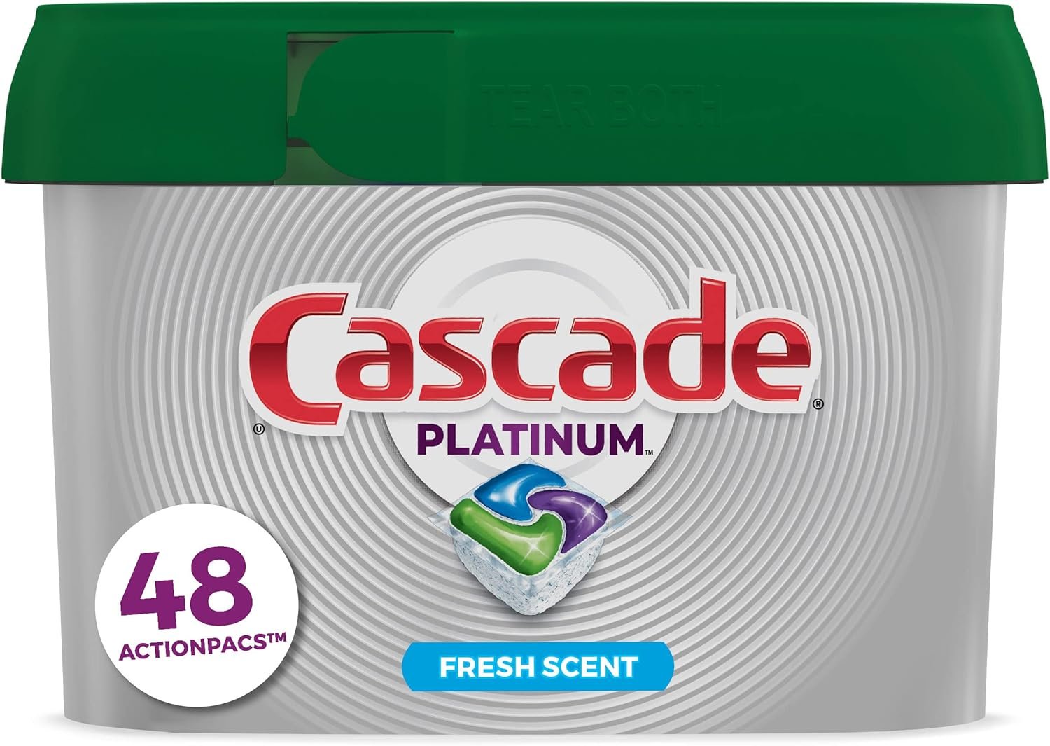 Cascade Platinum ActionPacs Dishwasher Detergent Pods, Fresh, 48 Count