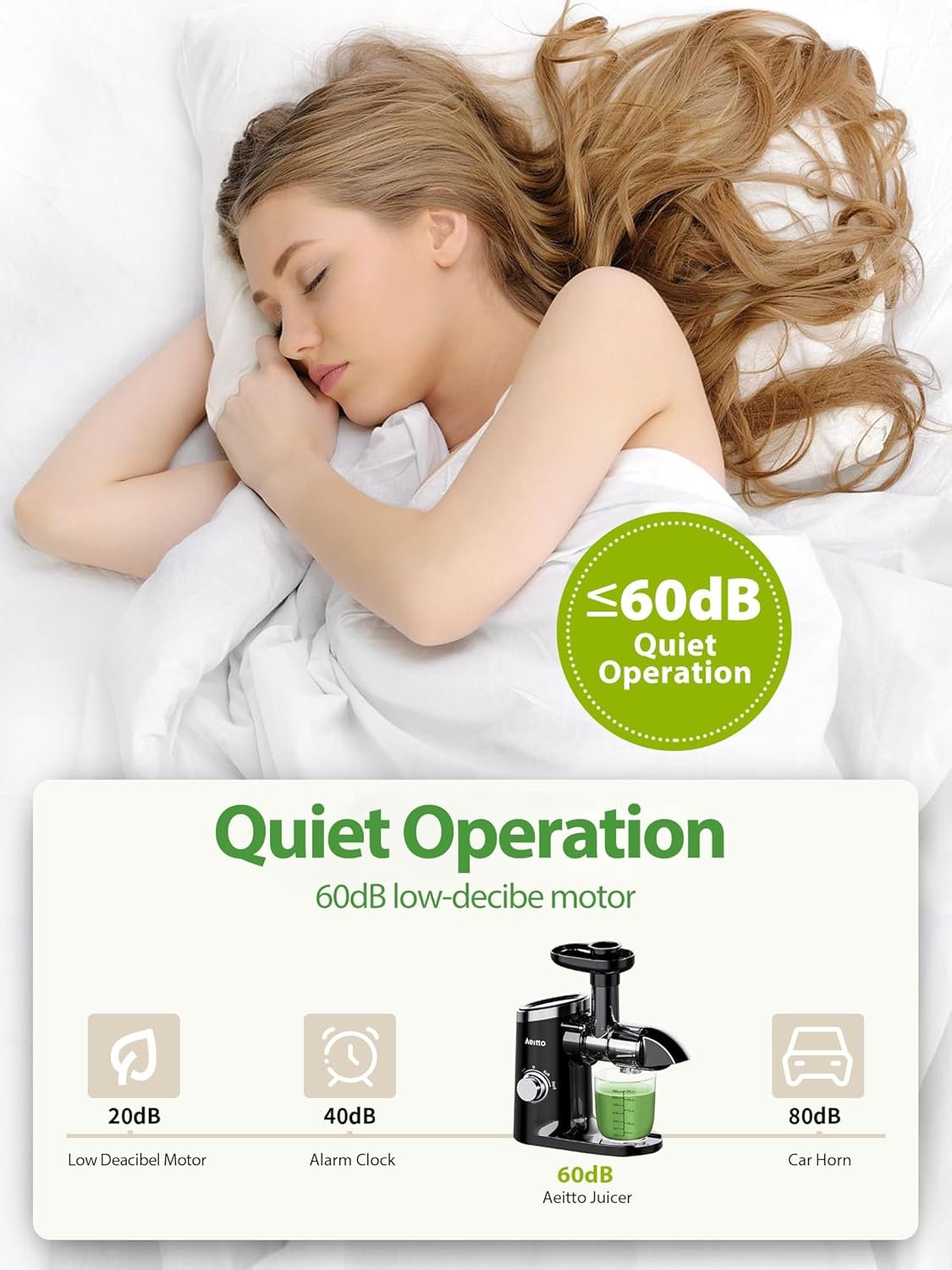 Easy to Disassemble & Clean:The one-button disassembly design eliminates the trouble of complicated disassembly.And Aeitto juicers is equipped with a cleaning brush to make the juicers cleaner easier.The parts are dishwasher safe.