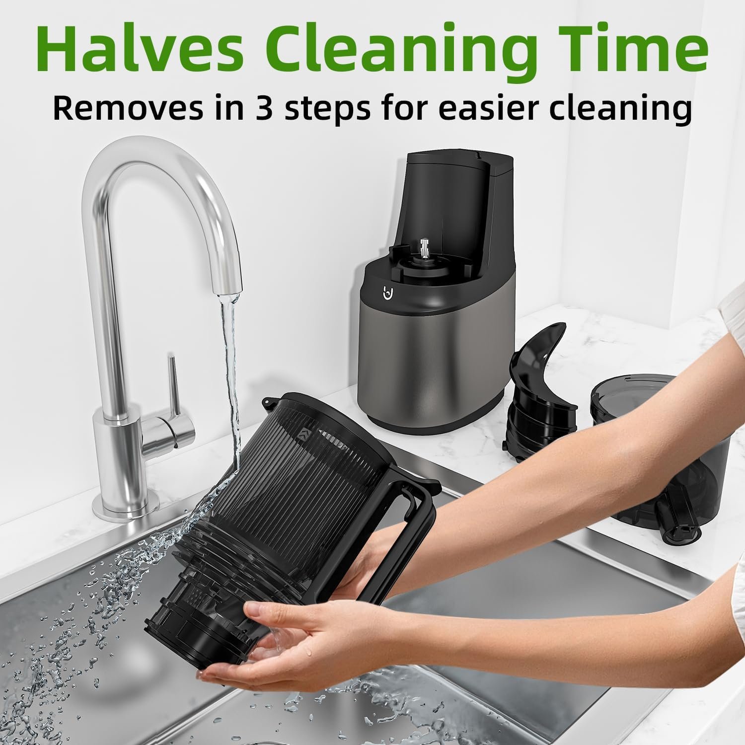 【Easy to Clean】Oyeree cold press juicer can be disassembled in just 3 steps, and with the included brush can be cleaned in minutes!