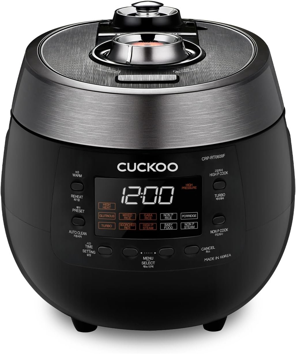 CUCKOO CRP-RT0609FB 6-Cup (Uncooked) / 12-Cup (Cooked) Twin Pressure Rice Cooker & Warmer with Nonstick Inner Pot, 14 Menu Options, Safe Steam Release, 3 Voice Guide, Auto Clean (Black)