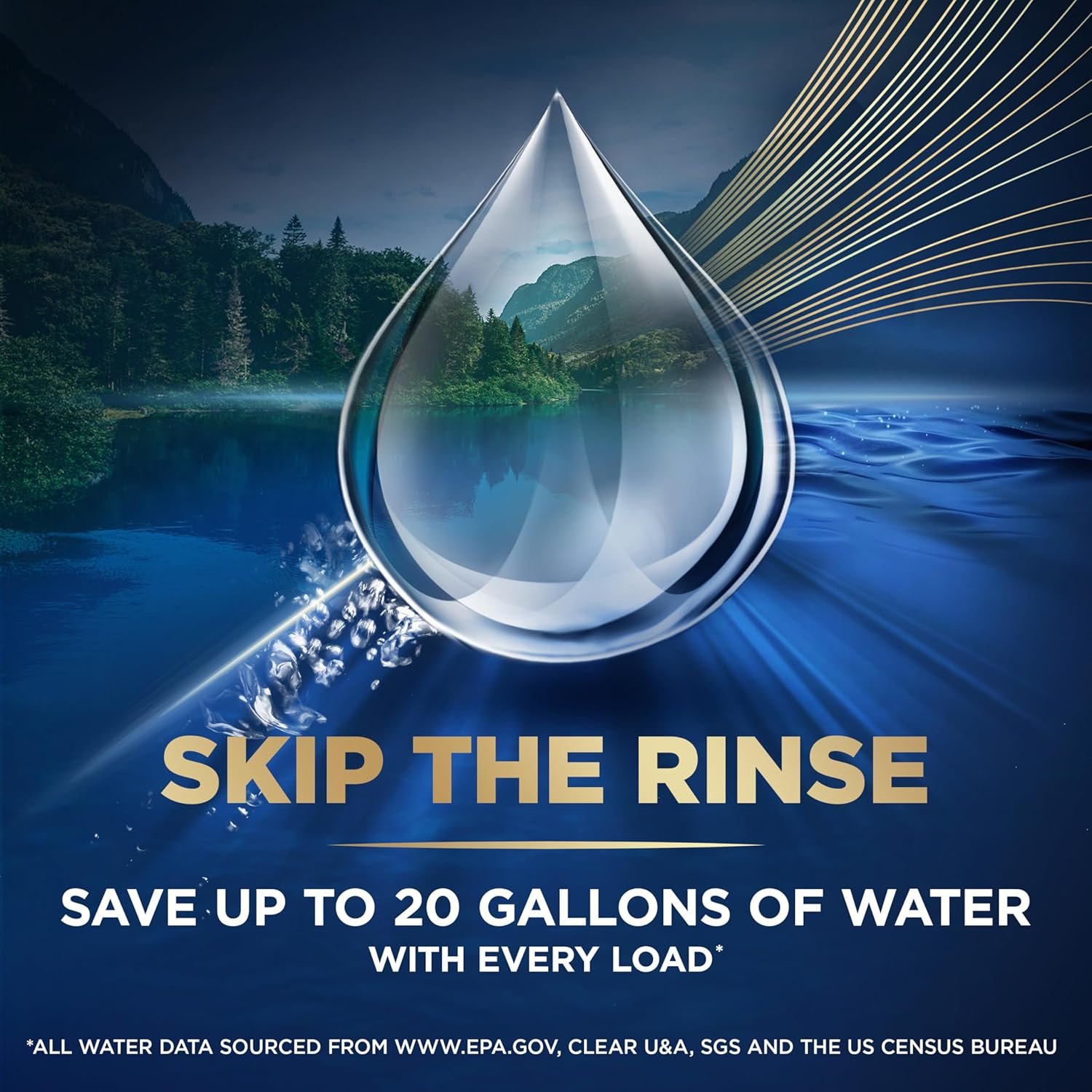 SKIP THE RINSE: Save time and water with these dish pods, specially formulated to break down tough food residues without the need for pre-rinsing. Save up to 20 gallons of water per load by skipping the rinse step!