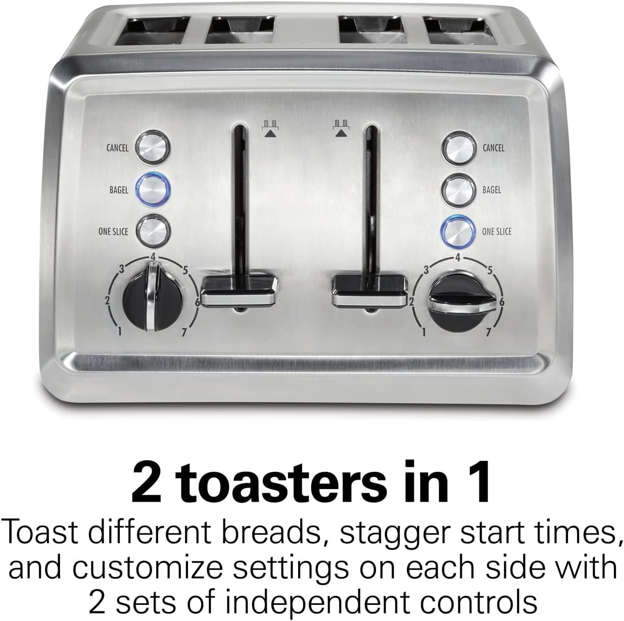2 TOASTERS IN 1: This innovative toaster works like 2 toasters in 1. Toast different breads, stagger toast start times, and customize settings on each side with 2 sets of independent controls.