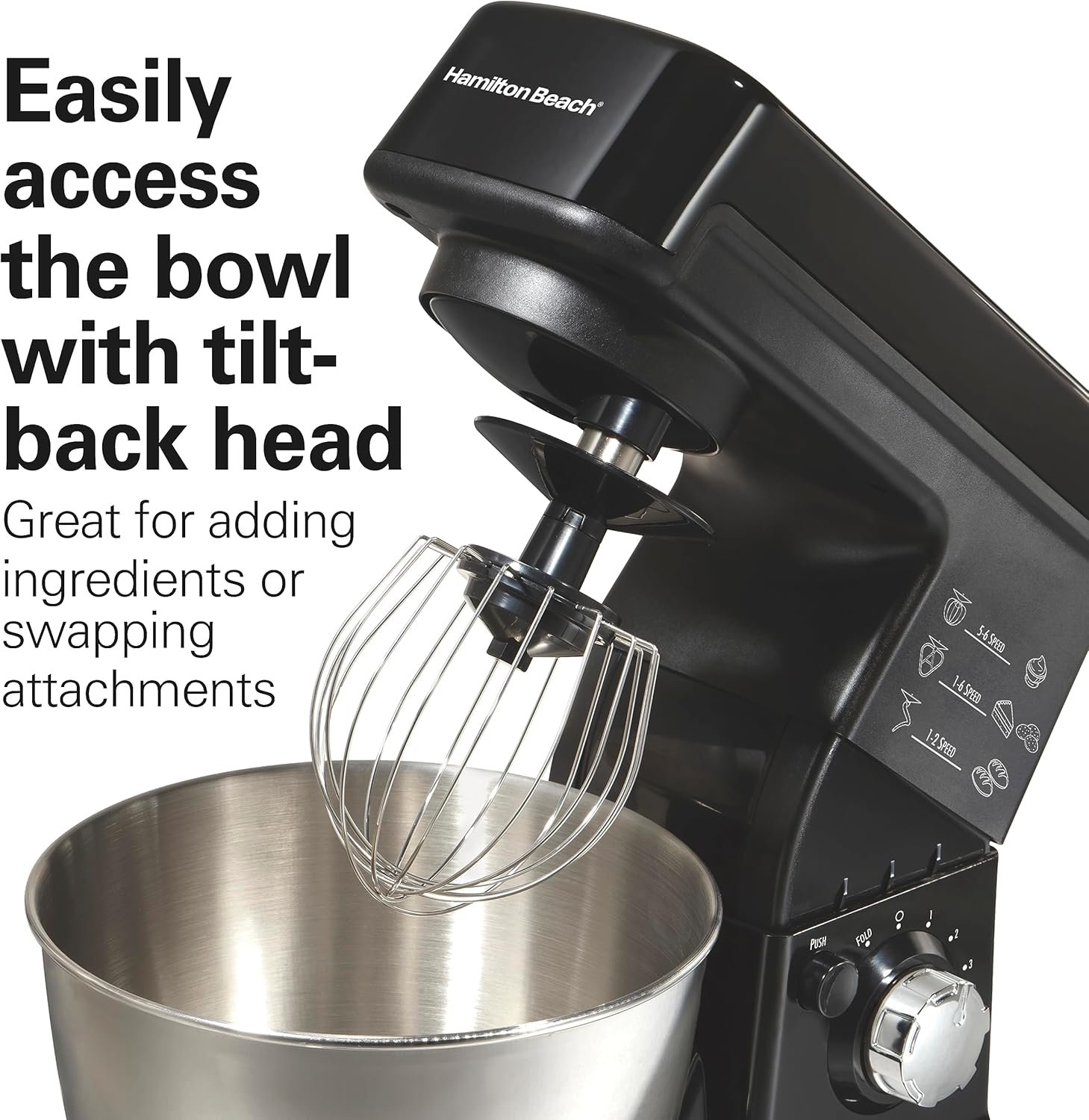Hamilton Beach 6 Speed Electric Stand Mixer with Stainless Steel 3.5 Quart Bowl, Planetary Mixing, Tilt-Up Head, 300W Motor, Black (63325)