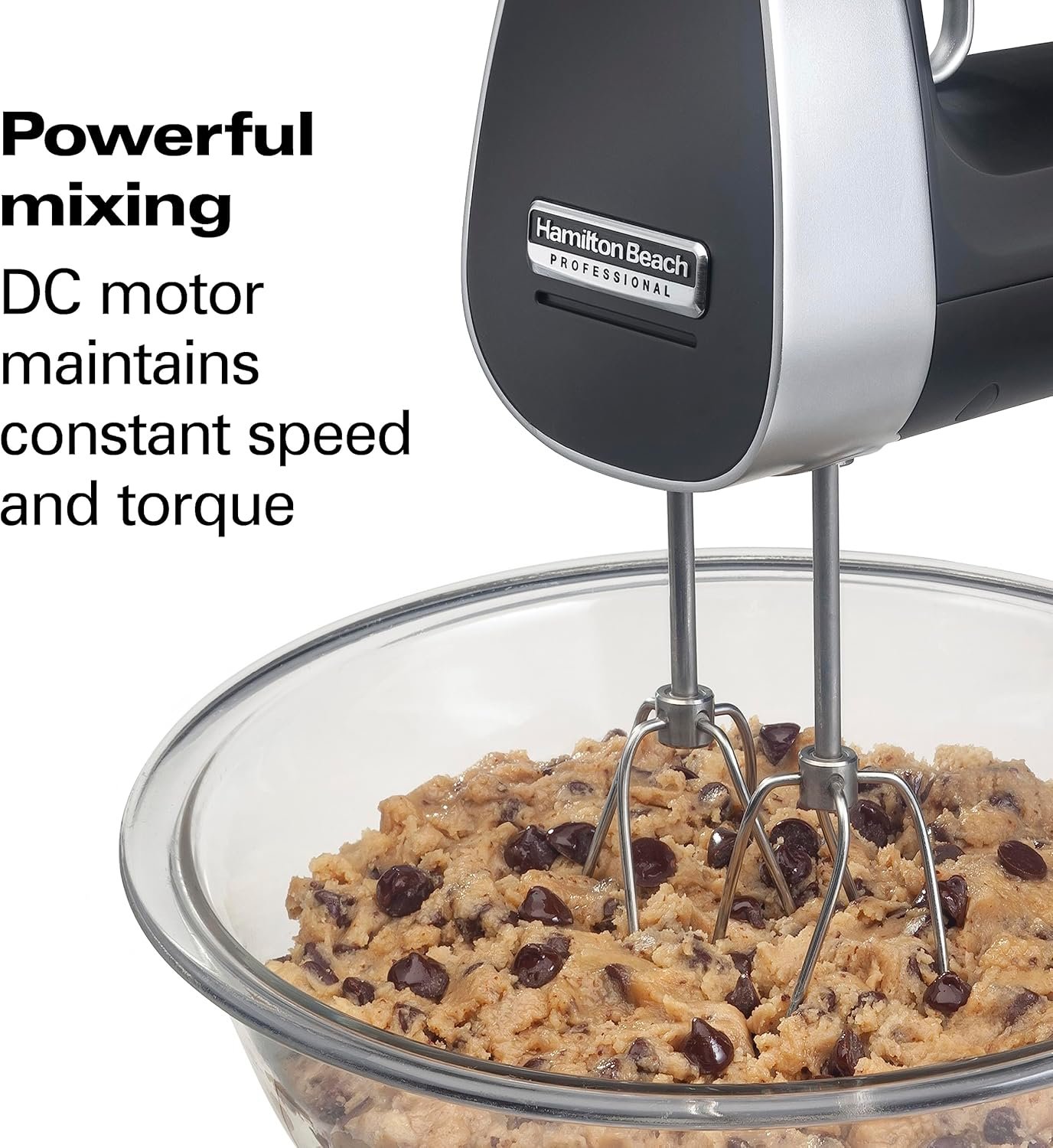 POWERFUL DC MOTOR: Take on everything from fluffy whipped cream to creamy mashed potatoes with this Hamilton Beach hand mixer. The DC motor maintains constant speed and torque for effortless mixing.
