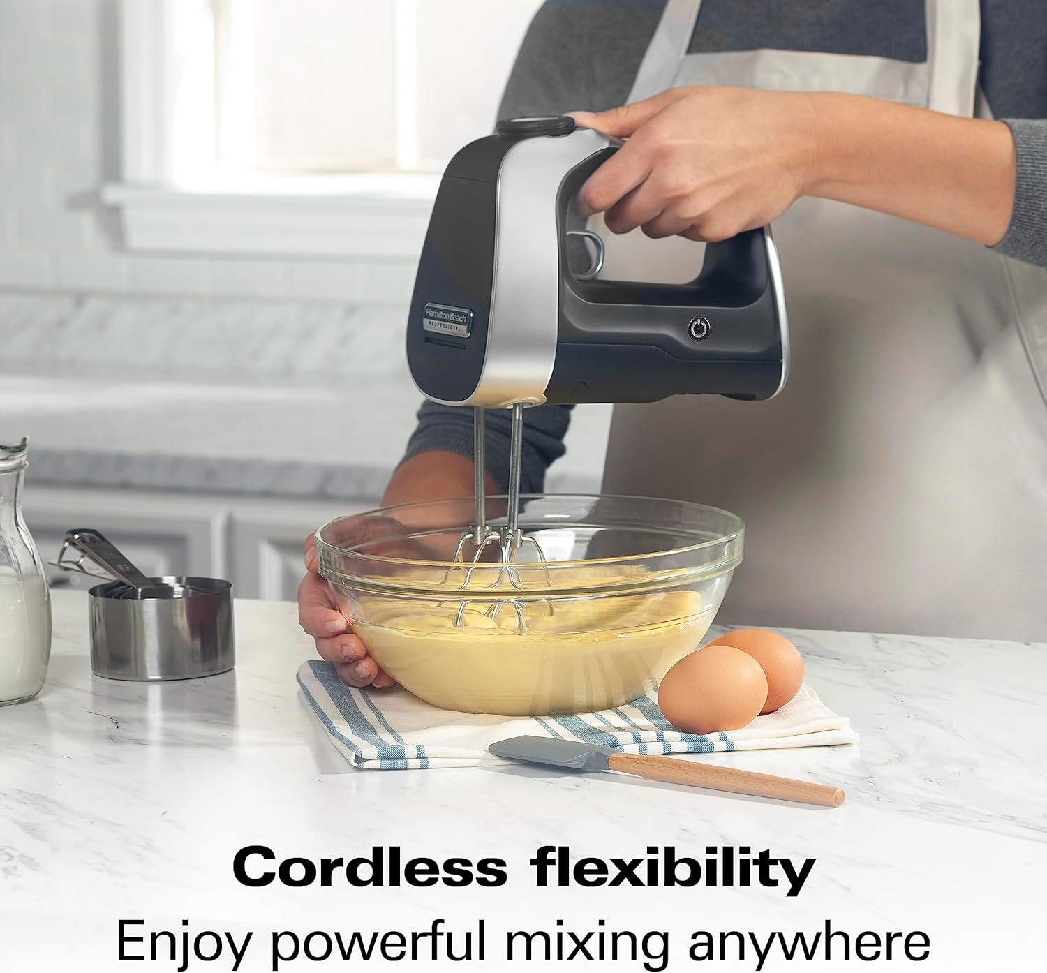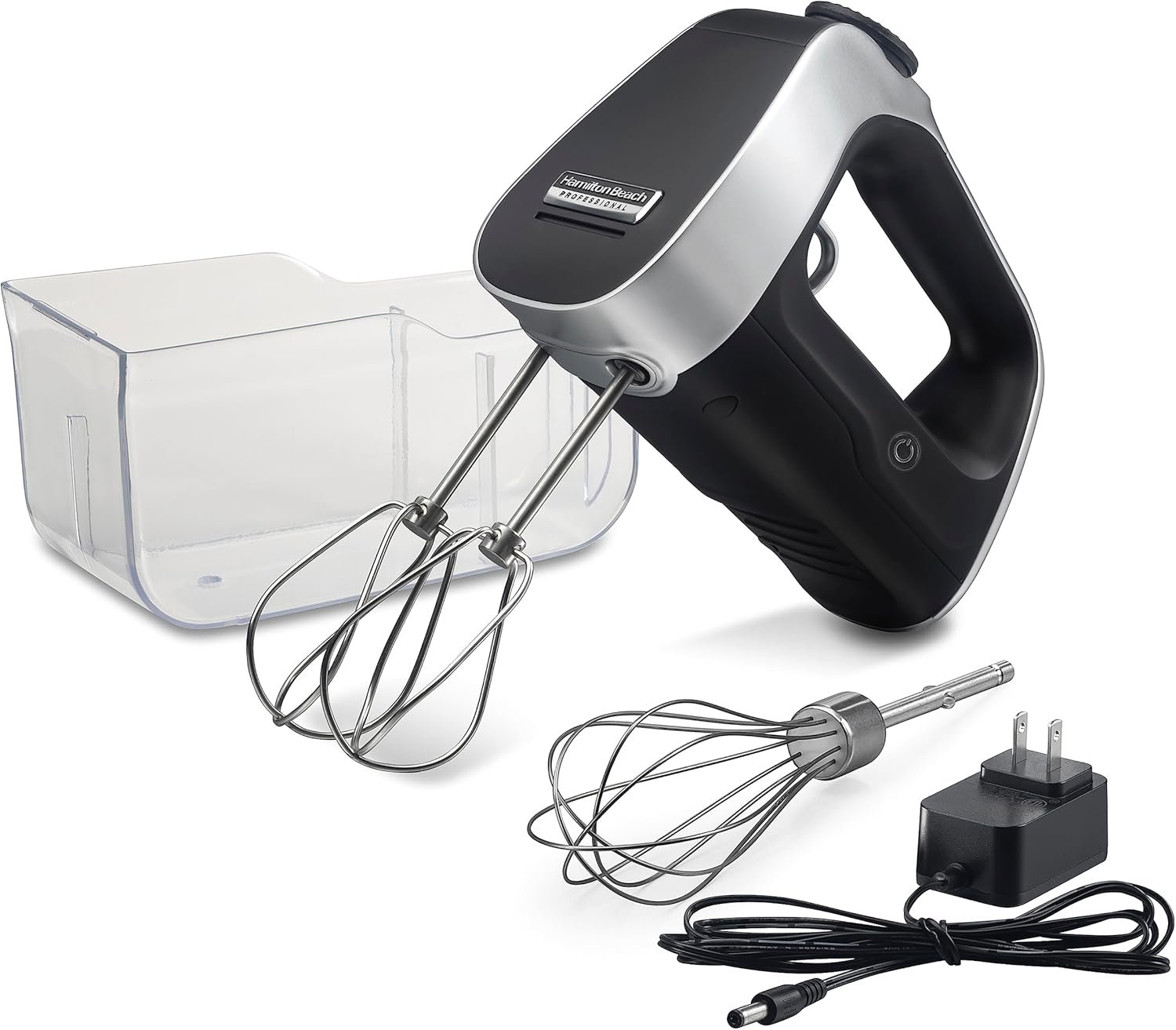Hamilton Beach Professional Cordless Electric Hand Mixer with Infinite Speed Control, Powerful DC Motor for Effortless Mixing, Quick Recharging, LCD Screen, Whisk, Storage Case, Black (62673)