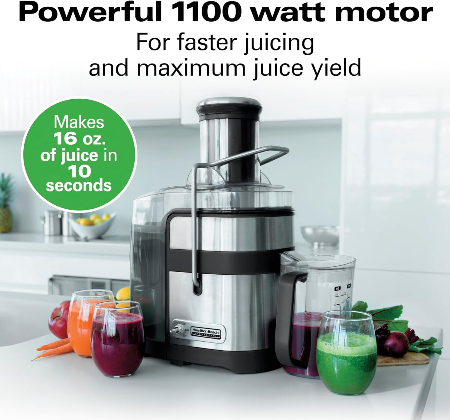 Hamilton Beach Professional Juicer Machine, Centrifugal Extractor, with 3.5” Super Chute for Whole Fruits and Vegetables, 1100 Watts Easy Sweep Cleaning Tool, Black (67906)