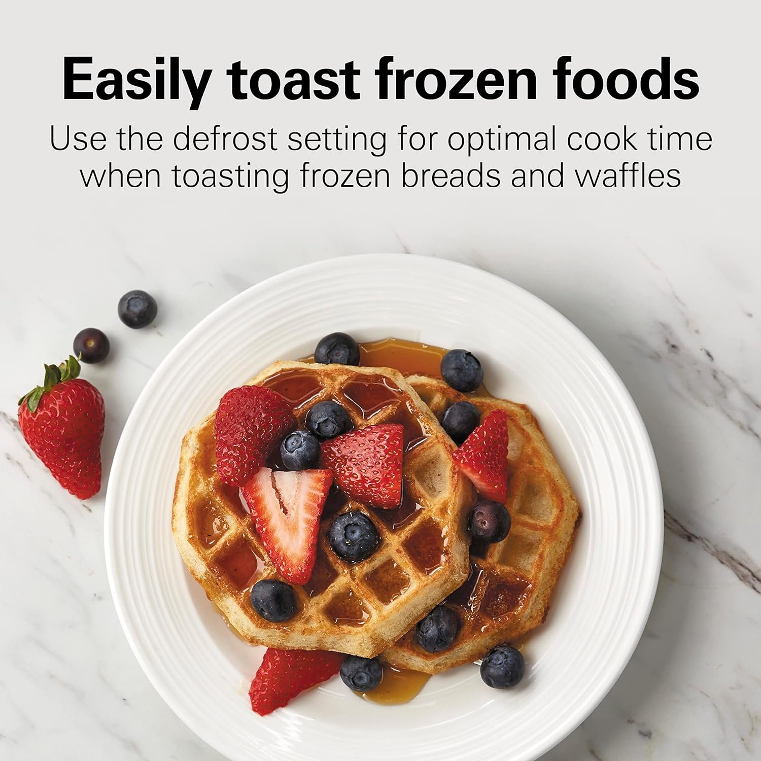 GIVE FROZEN FOODS EXTRA TIME TO COOK: Use the defrost setting for optimal cook time and flavor when toasting frozen breads and waffles. Just press one button to defrost and toast.