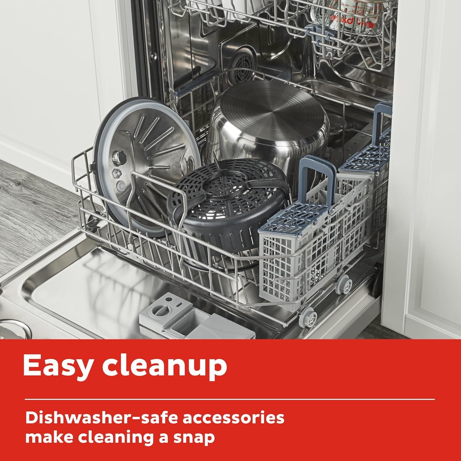 DISHWASHER SAFE ACCESSORIES: Clean up is a breeze! Cooking pot, steaming/air frying rack and inner pressure cooking cover are all dishwasher safe.