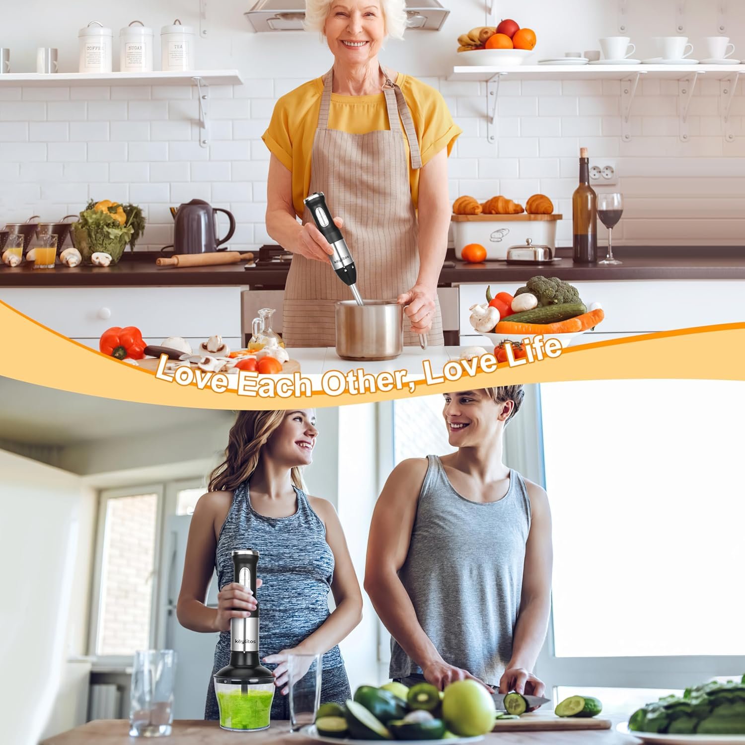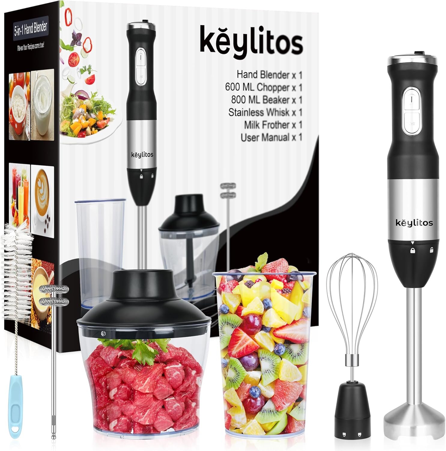 MULTIPLE ACCESSORIES YOU NEED: 5-in-1 stick blender for versatile capabilities. Includes blender, 600ML (20 fl. oz) chopper, 800 ML (28 fl. oz) beaker, milk frothing attachment and egg whisk. Keylitos handheld blender is ideal for families, mothers or food lovers
