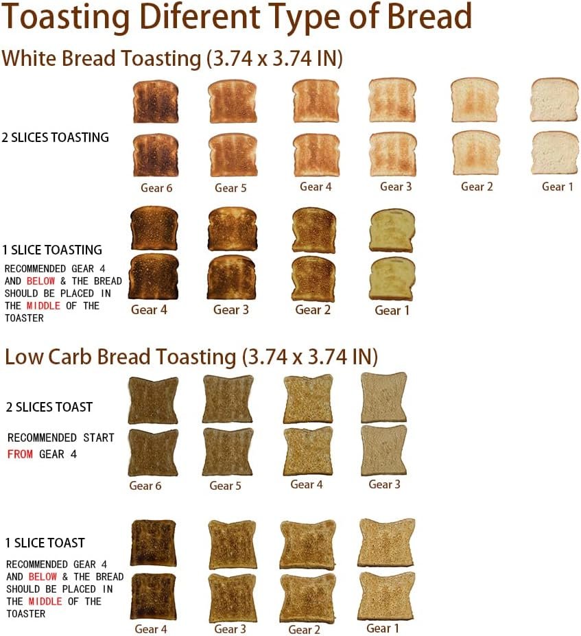 🍞【6 BROWNING SETTINGS BLACK TOASTER】- The best rated kitchen toaster has 6 browning settings, from “light” (1) to “dark” (6), which can be adjusted by the browning regulator that controls the baking time. The baking time is the 70s to 210s, suitable for different toast needs, allowing you to make light, medium, and crispbread in a few minutes, and enjoy a delicious breakfast with family and friends. After setting the desired degree of browning, insert the bread into the toaster extra wide slot.