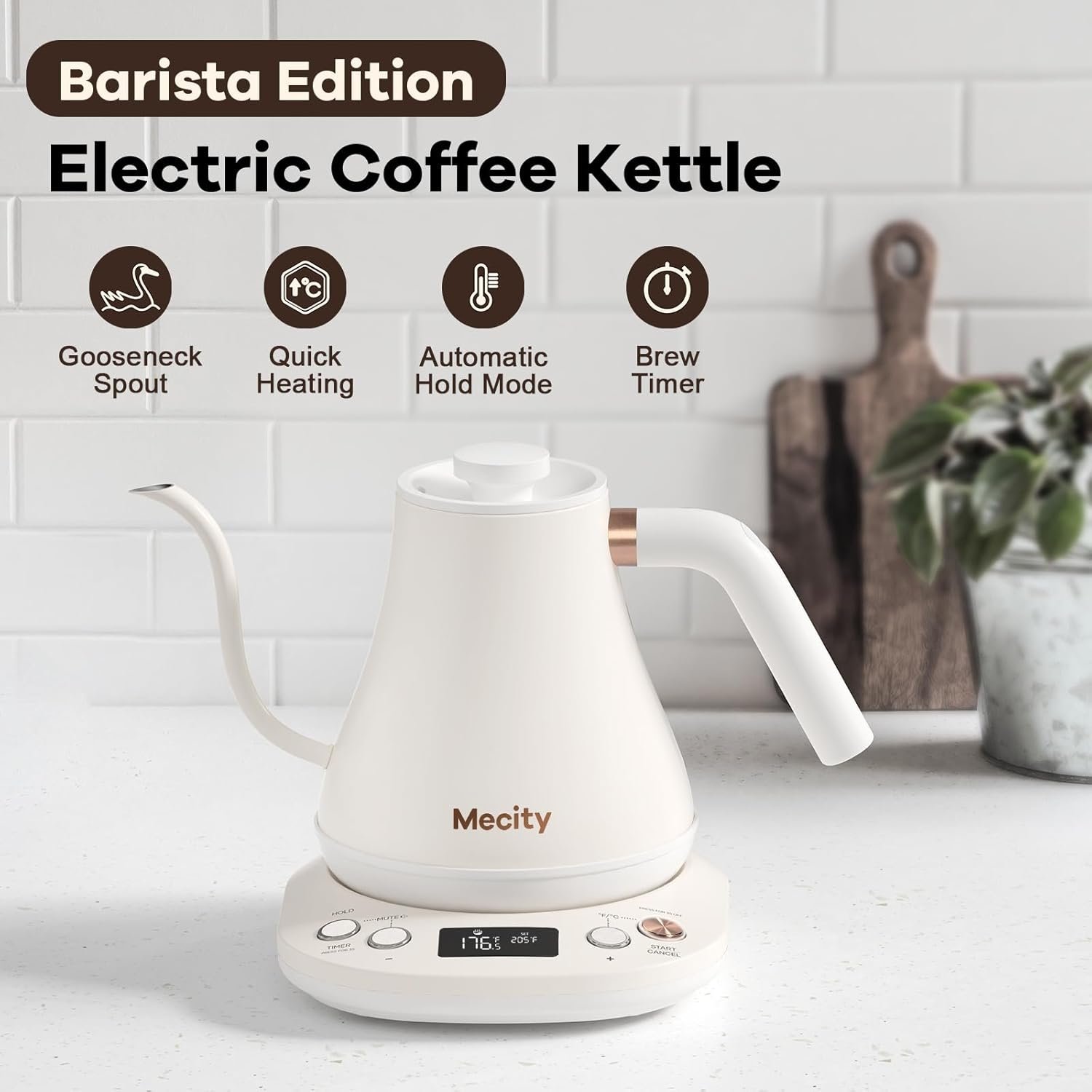 Mecity Electric Gooseneck Kettle With Keep Warm Function & LCD Display Automatic Shut Off Coffee Kettle Temperature Control Pour Over Kettle 1200 Watt, 0.8L, 120V, Off White