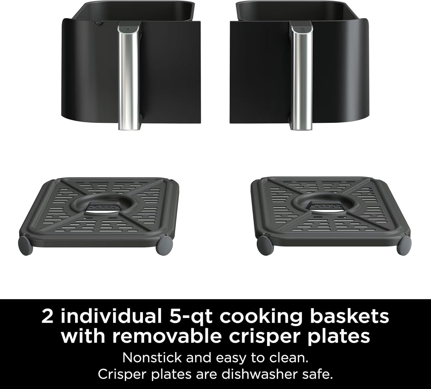 Ninja R-AD300CO Foodi 6-in-1 10-qt. XL 2-Basket Air Fryer with DualZone Technology, Black – Certified Refurbished