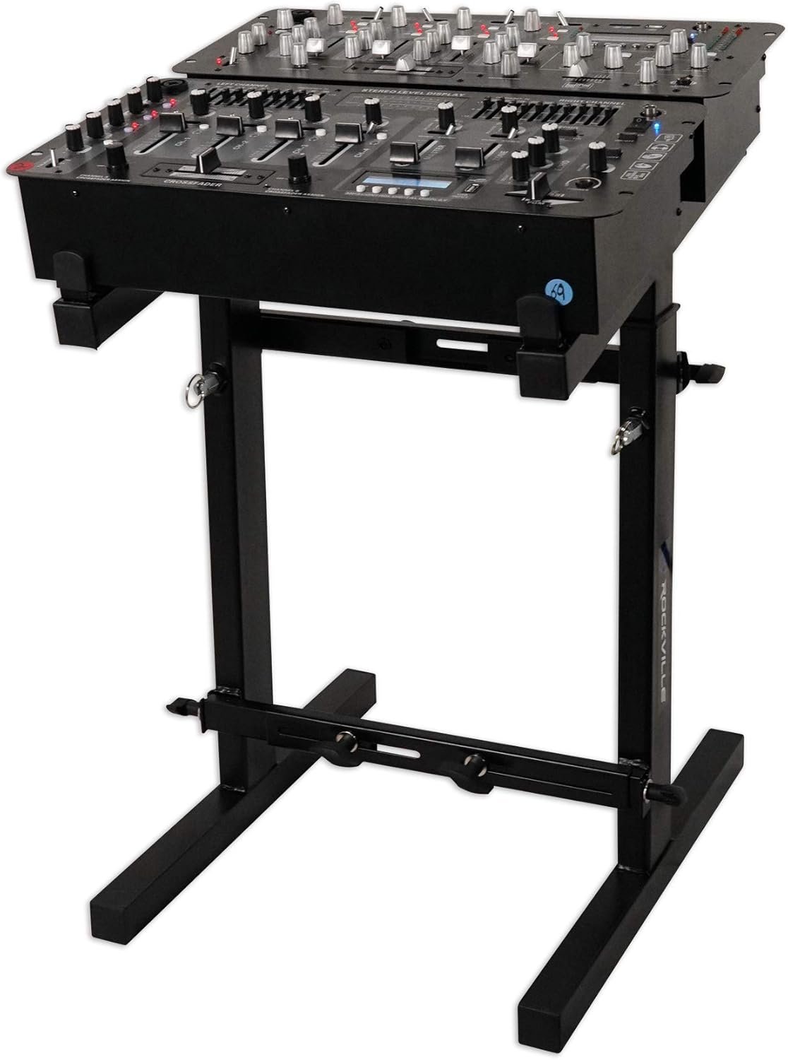 Rockville RXS20 Heavy duty mixer standUniversal with any mixer up to 300 LBS!Collapsable for maximum portability and easy storageAdjustable width (13.8” – 23.6” Inches) making this universal for any mixer and other gearAdjustable Height from 24” – 36” (Inches)Steel stand with sturdy armsLarge enough for mixers, DJ gear, keyboards, and moreLoad capacity: 300 LBS1 MM thick steel all around! This piece is rock solid! At Rockville we only make top quality gear!Best quality black powder paint coatingSoft padding on mounting platform to protect your audio devicesRubber feet on the end of each leg