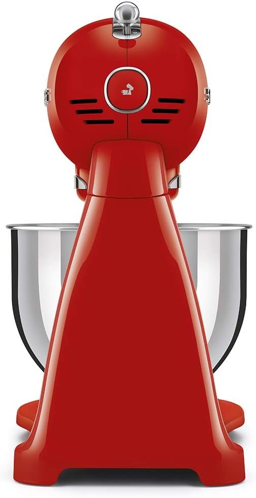 This Smeg 50’s Retro Style Aesthetic Stand Mixer is made with a die‐cast aluminum body, zinc‐alloy base, and a stainless steel bowl lock.