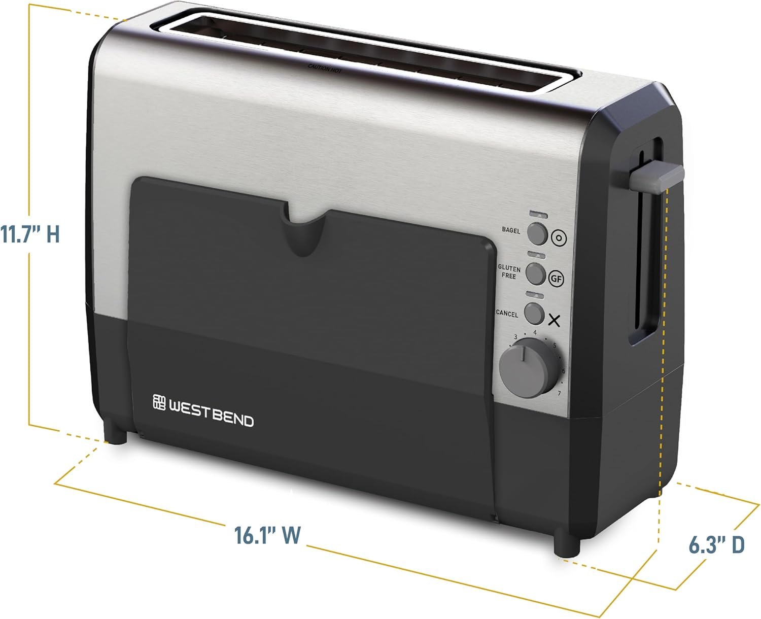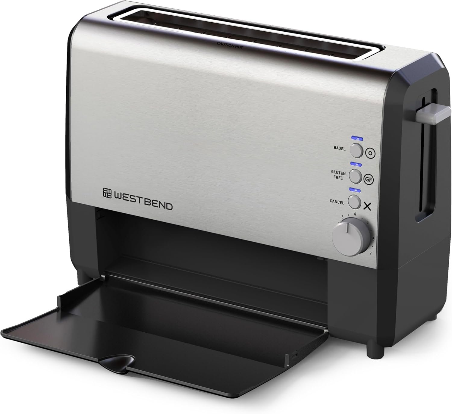 West Bend 77222 Toaster 2 Slice QuikServe Wide Slot Slide Through with Bagel and Gluten-Free Settings and Cool Touch Exterior Includes Removable Serving Tray, Silver